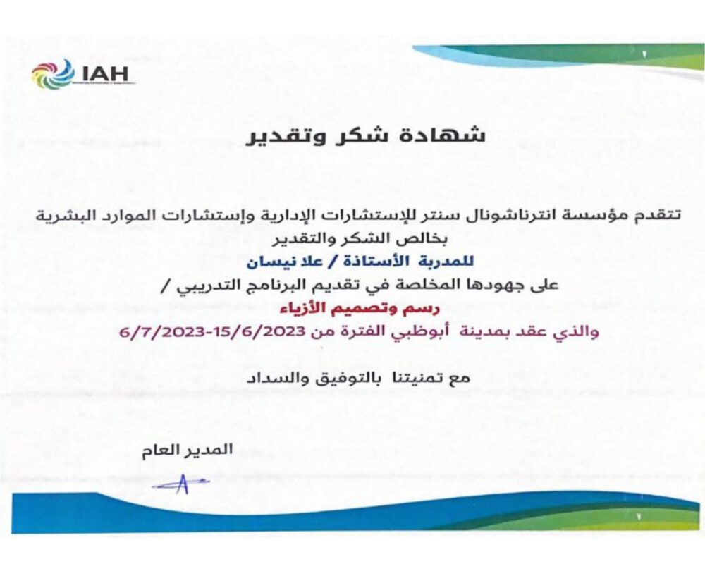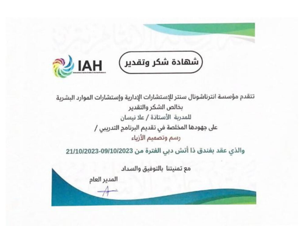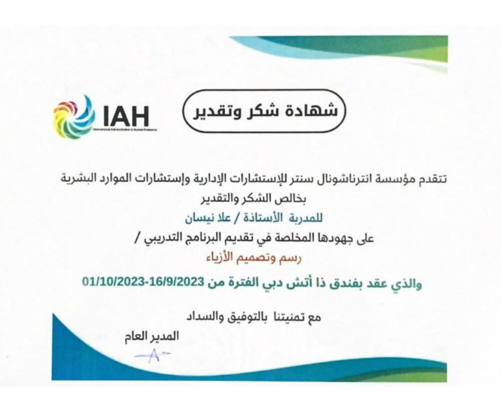 “تأسست Ola Nissan Couture Academy بهدف واحد: تحويل شغف الفتيات بالأزياء إلى مسيرة احترافية. نحن نؤمن أن كل تصميم يبدأ بفكرة، وكل فكرة يمكن أن تتحول إلى قطعة فنية حقيقية بعقلية الكوتور: فخامة، دقة، إبداع، واهتمام بالتفاصيل الصغيرة.